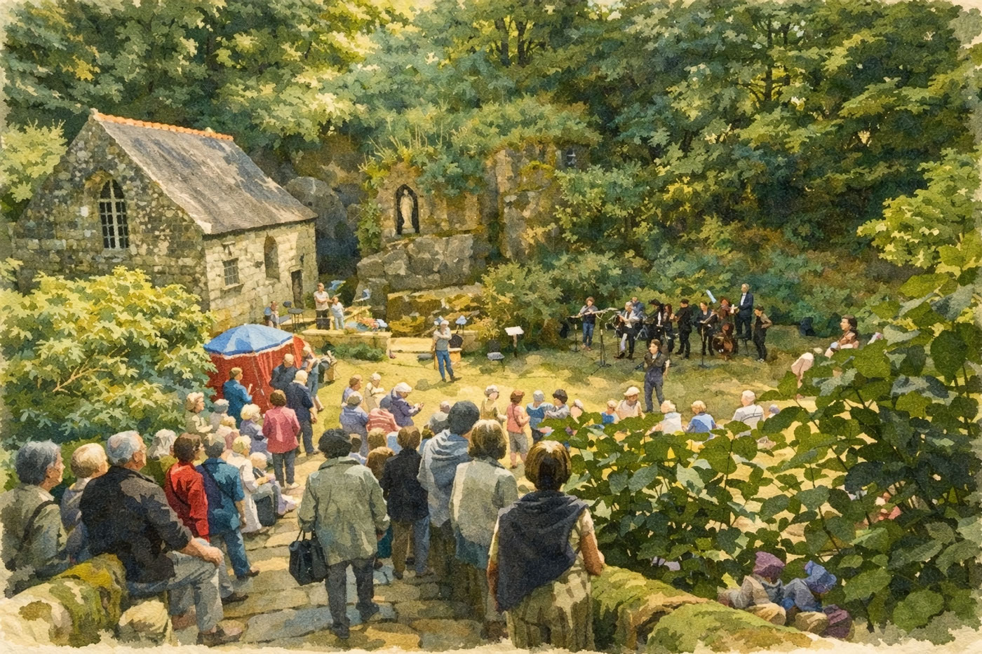 Notre ensemble paroissial réunit les paroisses de Ploërdut, Locuon, Le Croisty, Saint-Caradec-Trégomel, Saint-Tugdual